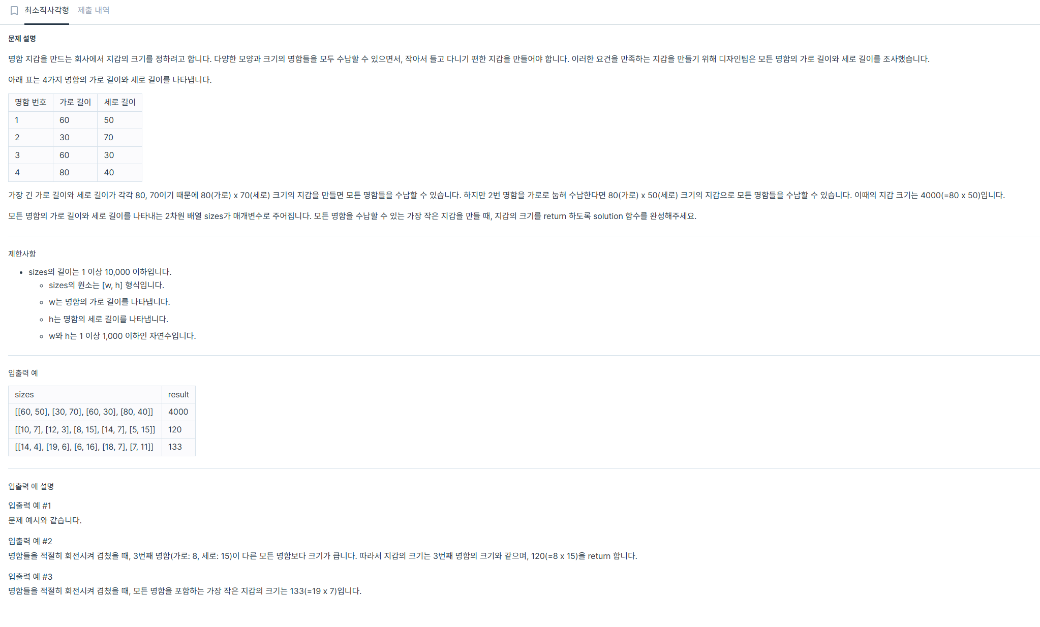 public int solution(int[][] sizes) {