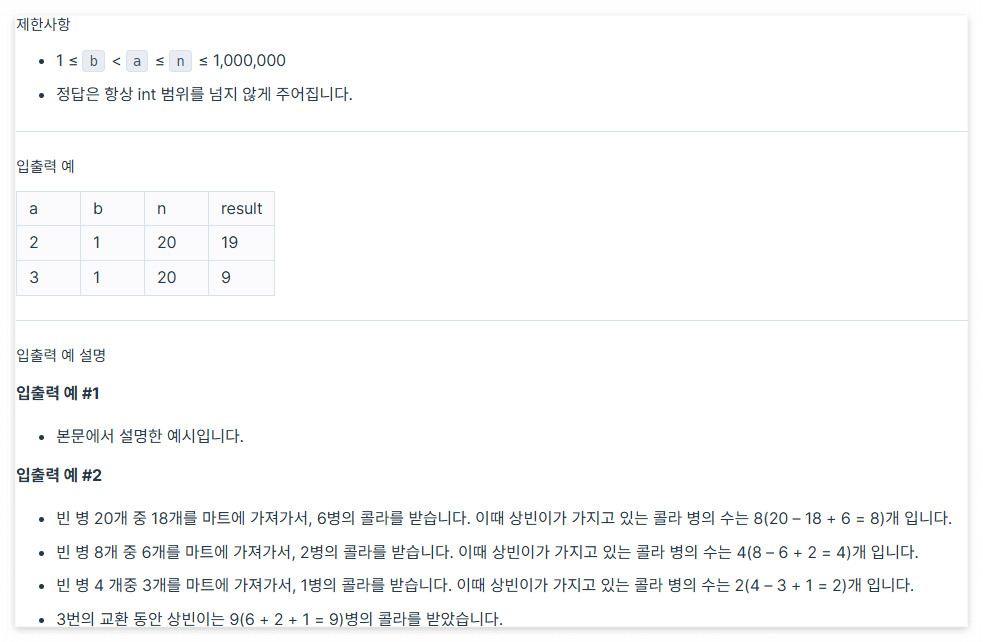 // n개의 콜라는 a로 나눈다 20/2 = 10
