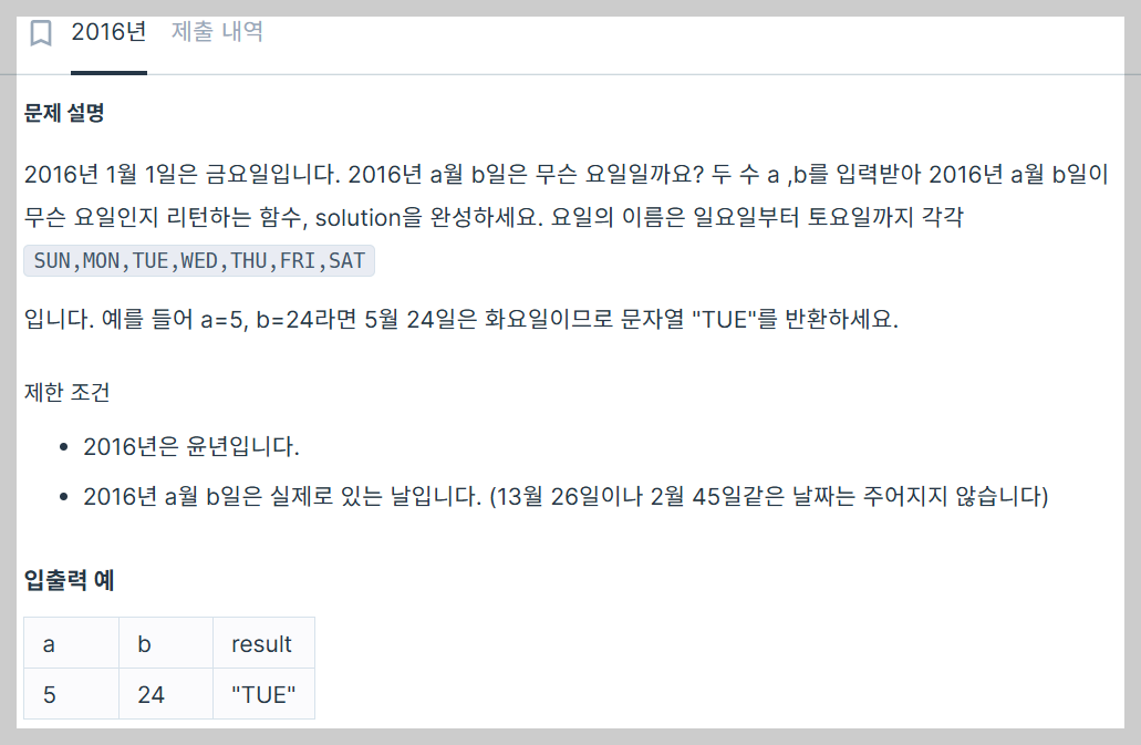 String[] months = {"THU", "FRI", "SAT", "SUN", "MON", "TUE", "WED"}; // 1 index를 금요일로 위치함