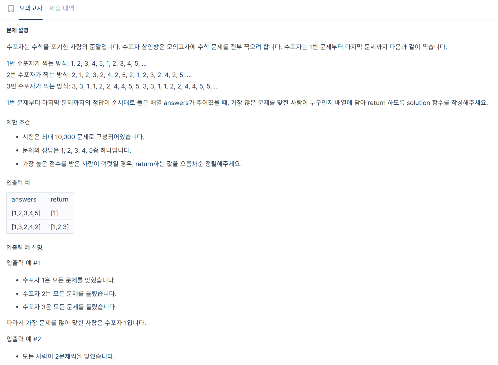 for (int i = 0; i < answers.length; i++) { // 0,1,2 ... 문제 번호