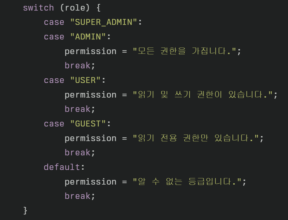 Fall-through 방식보다 의도가 명확하고 코드가 훨씬 깔끔해집니다.